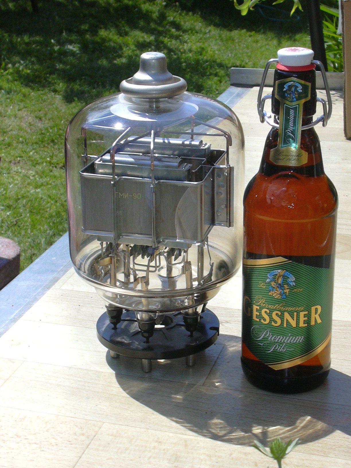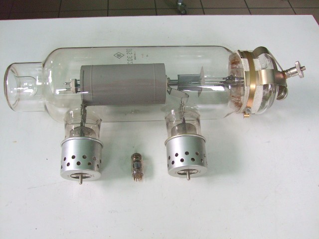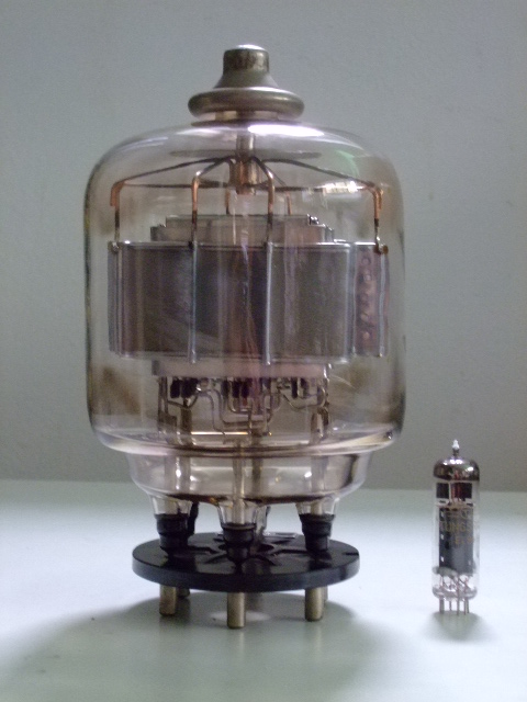 Die kleine Röhre ist die EL84 Steuerröhre für das Magnetron in Radarsendern. Ein Prachtexemplar russischer
