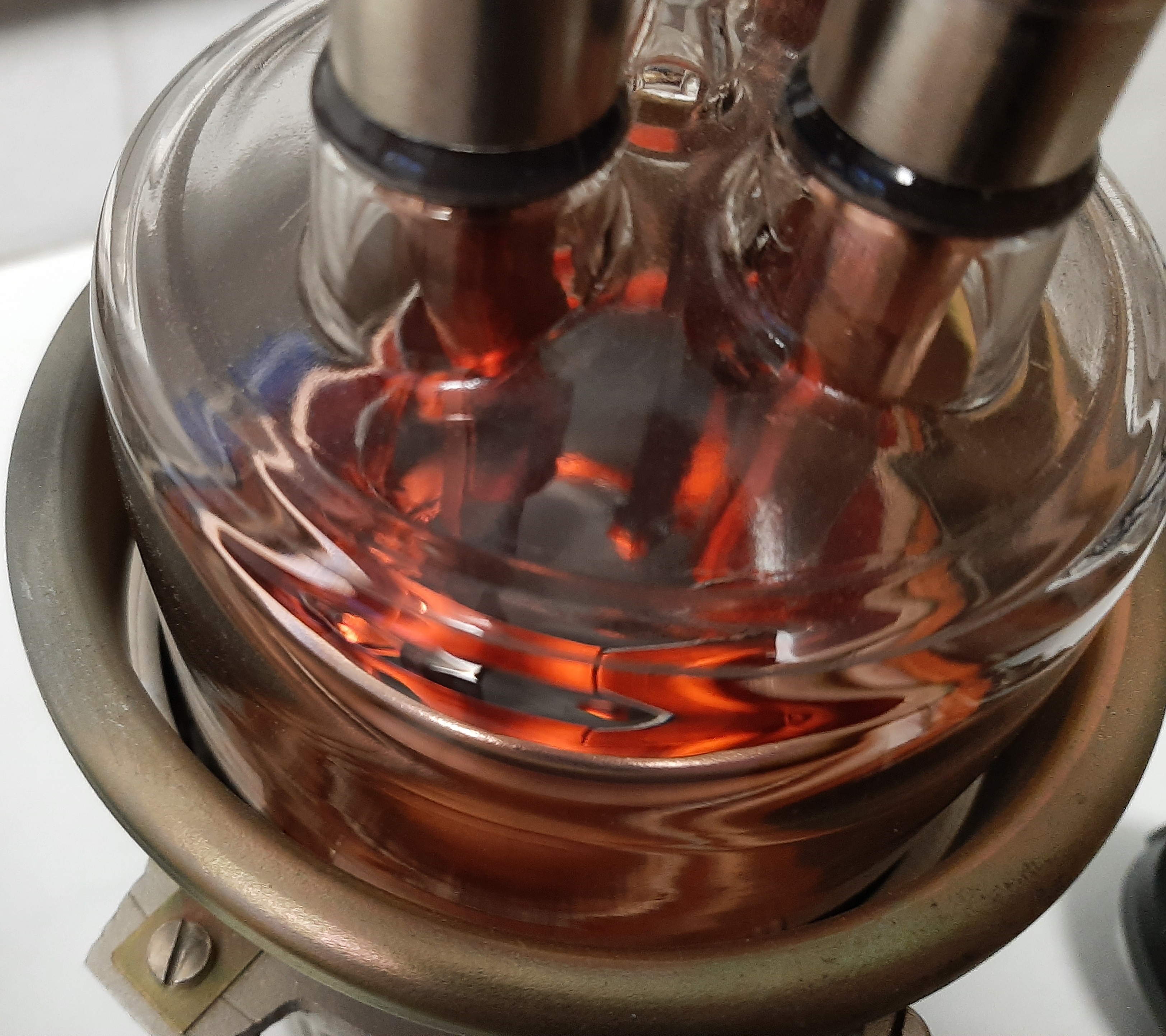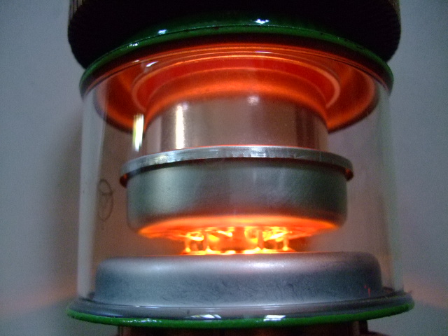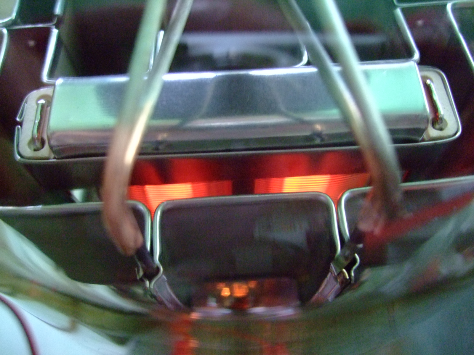 ist hier nur mit 12V geheizt, wäre sonst zu hell zum fotografieren, vorgesehen sind 16V bei einem Strom von ca. 20A. Sie wurde in einer speziellen Transportkiste geliefert und sollte nur stehend bewegt werden |