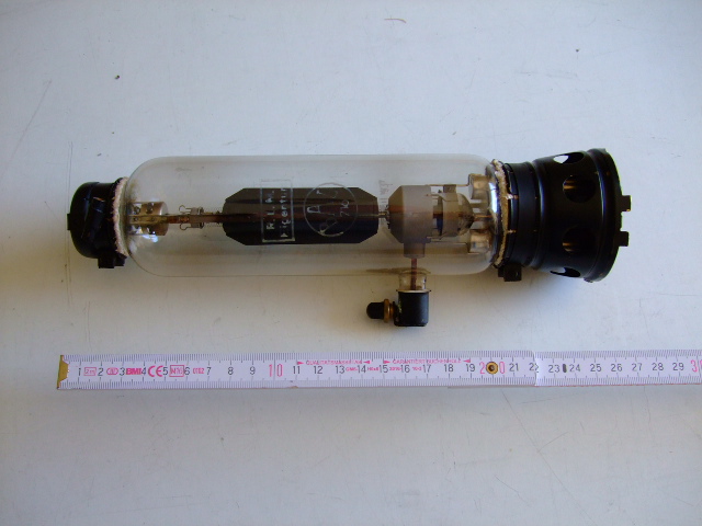 Die Röhre ist nagelneu und bei Sammlern recht begehrt, sie wird auch nicht oft angeboten. | Vorgesehen war sie für einen kunststoffverarbeitenden Betrieb in Thüringen, ich nehme an für einen Generator zur Hf-Erwärmung. |